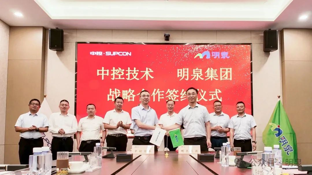 7月3日下午,明泉集團與中控技術戰略合作簽約儀式在杭州舉行。此次戰略簽約雙方將在行業生態共建、智能化轉型、新產品新技術應用、新工藝整體解決方案開發、合作成果產業化應用等領域展開相關合作。
